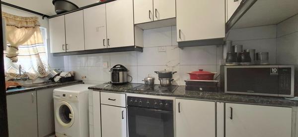 Discover this inviting 2-bedroom, 1-bathroom suburban apartment spanning 96 sqm in the sought-after Morningside area of Durban. The functional layout includes a comfortable lounge and a well-appointed kitchen. The kitchen features ample white cabinetry, dark speckled granite countertops, an integrated oven and stove, and convenient space for a washing machine. A practical pass-through with a breakfast bar connects to the living area, enhancing the flow for daily living and entertaining.