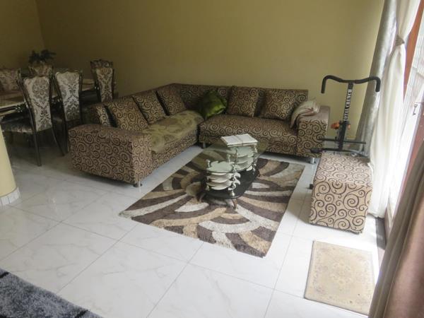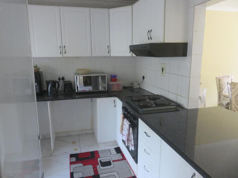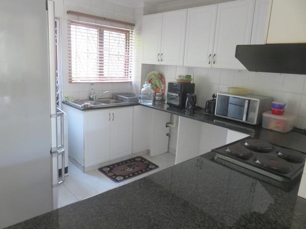 In a secured gated complex , 24 hour security. Kitchen comes with fitted built in cupboards and black granite tops. Open plan lounge , dining area leading onto a patio. The upstairs level has 3 bedrooms that are tiled, one bedroom has an ensuite, shower, basin and toilet, general bathroom with bathtub, toilet and basin. Close to school , hospital, close to mosque. The downstairs level has a guest toilet and basin