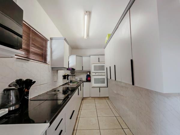 The kitchen is tastefully finished with beautiful cupboards and flows seamlessly into a cozy open-plan lounge and entertainment area. This inviting living space is filled with natural light and opens via sliding doors onto a small private patio and communal outdoor area perfect for relaxing or enjoying afternoon coffee.