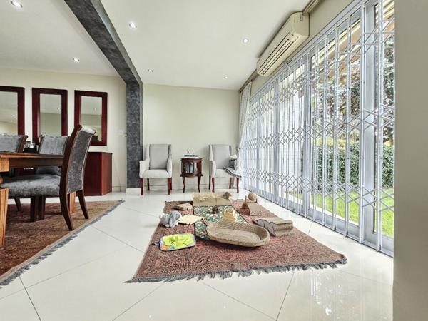 Elegant open-plan lounge & dining area with natural light