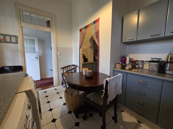Inside, the apartment feels both welcoming and timeless. The spacious bedroom offers a restful retreat, complemented by classic wooden-framed windows that feature built-in burglar bars for added peace of mind. The thoughtful layout makes it ideal for anyone seeking a home that offers both comfort and a sense of privacy.