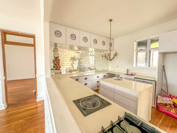The designer kitchen is a standout feature, complete with a gas and electric stove, sleek touch-controlled cabinetry, warm wooden flooring, a statement chandelier, and tasteful mirror-tiled finishes. It flows effortlessly into the spacious open-plan lounge and dining area, filled with natural lightperfect for family dinners or relaxed weekends at home.