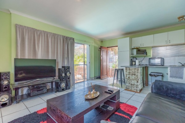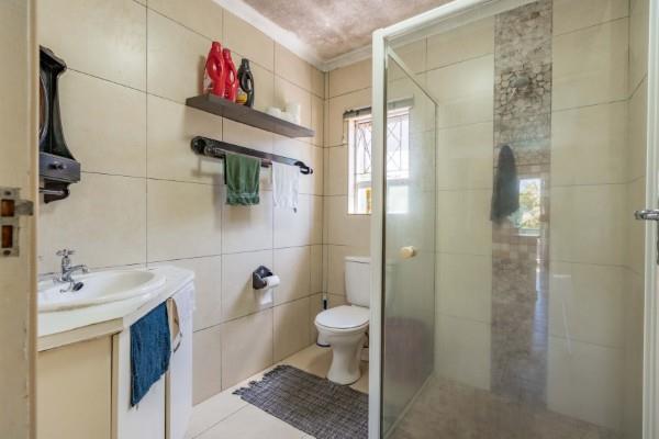 This home is situated on a corner stand and can be accessed from three different points. The east side features both a pedestrian entrance and access to a double garage. The west side offers a gated door entrance, allowing vehicles to enter and be parked in an additional parking bay. The south side has a pedestrian entrance leading into the main home, where you will also find a beautiful pool and braai area.