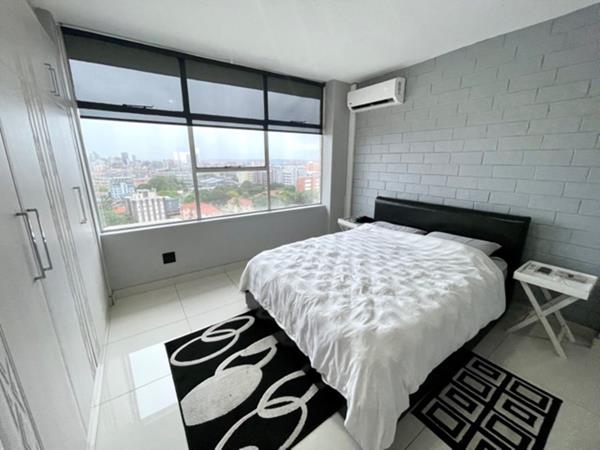 The second bedroom is snug and warm and has views towards the south of Durban. Includes cupboard space as well.