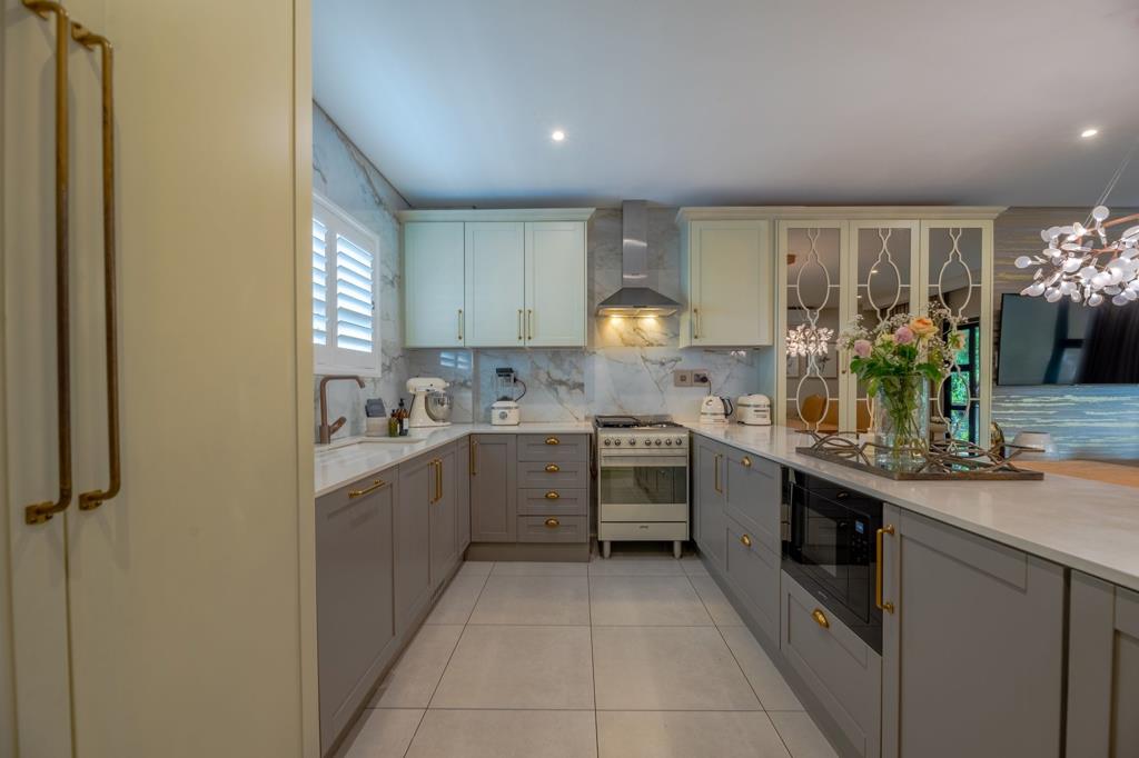 A fully integrated seamless caesar stone kitchen with an open plan designed marble splash back from counter top to ceiling and porcelain tiles throughout. All the bathrooms have been upgraded with bidet shower sprays including beautiful built-in-cupboards in all the bedrooms and American shutters throughout the apartment.