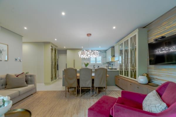 The minimalist dcor perfectly matches the apartment, and the seamless flow throughout is in keeping with the market trends.