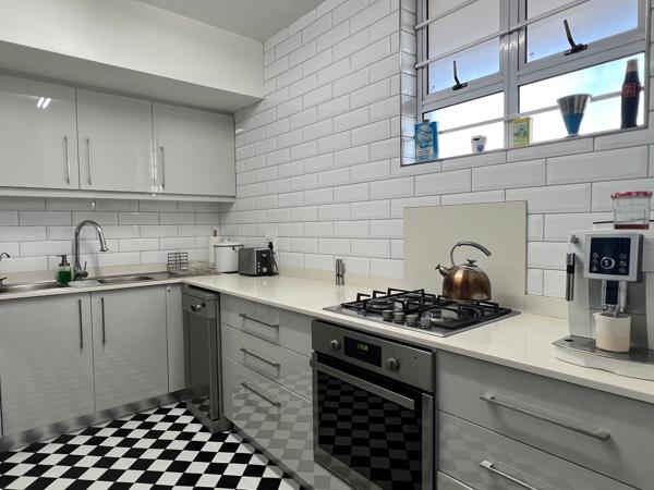 The kitchen presents a crisp white and practical space with high quality finishes. Gas hob and undercounter oven. Built-in space for the dishwasher.
