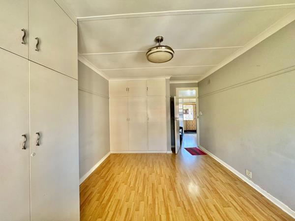 Around the corner you will find the bedroom which has space has ample built in cupboards.
