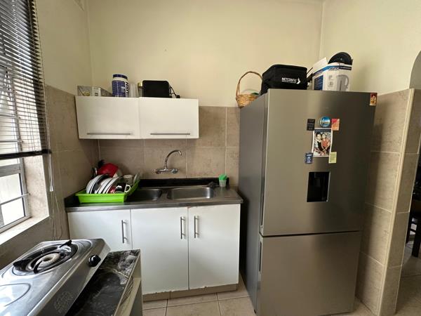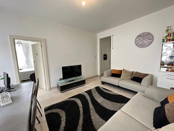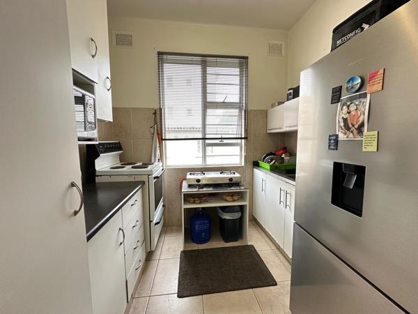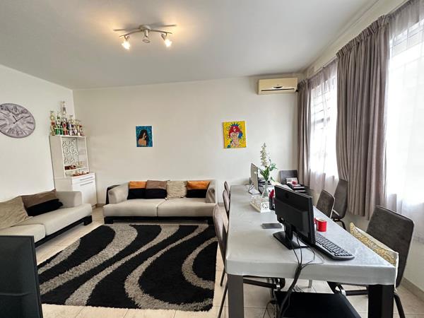 The apartment features 2 bedrooms and a versatile half bedroom that can be used as a home office, toddler room, or play space. An open-plan living and dining area connects seamlessly to the kitchen, creating a comfortable and functional living space. One secure parking bay is included for added convenience