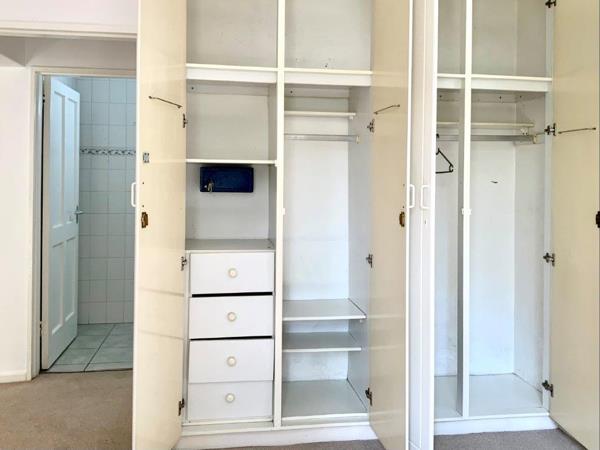 The spacious bedroom has built in cupboards, a large picture window and has a bright sunny outlook onto the private garden.