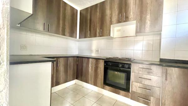 As you enter, you are welcomed by a spacious entrance hall that provides easy access to the kitchen. The kitchen is equipped with built-in cupboards, granite countertops, a double sink, and a stove with an extractor fan and under-counter oven.