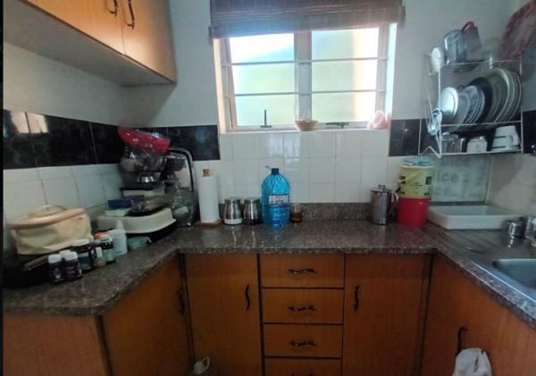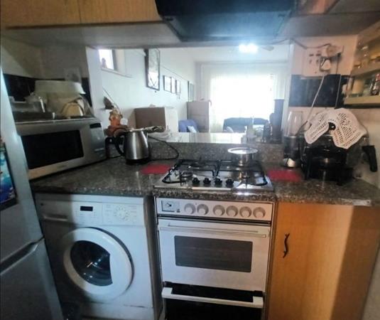 This well-presented apartment offers spacious and light-filled interiors throughout. The open-plan lounge and dining area is sunny and welcoming, leading to a fully fitted kitchen with granite countertops, gas stove, oven, and plumbing for a washing machine.