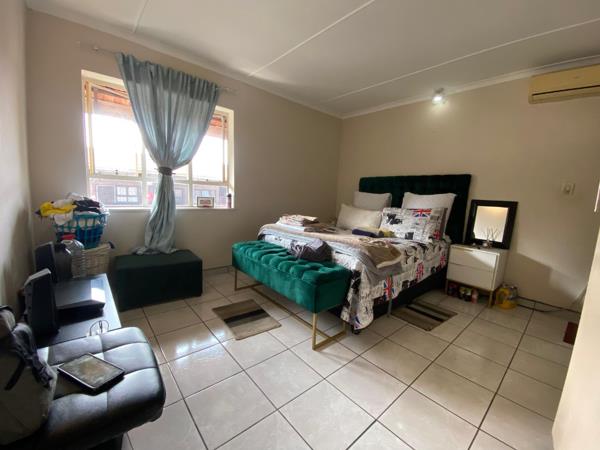 The main bedroom is tastefully finished with built-in cupboards and its own en-suite bathroom with a bathtub and basin.