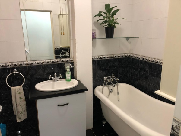The spacious lounge and dining area, fitted with air-conditioning and a ceiling fan, flows seamlessly to an enclosed balconyideal as a home office or additional half-bedroom. The generously sized main bedroom boasts air-conditioning, a ceiling fan, abundant built-in cupboards, and access to a second enclosed balcony, creating a bright and private retreat. The en-suite bathroom includes a large tub, basin, and shower, complemented by a separate toilet.
