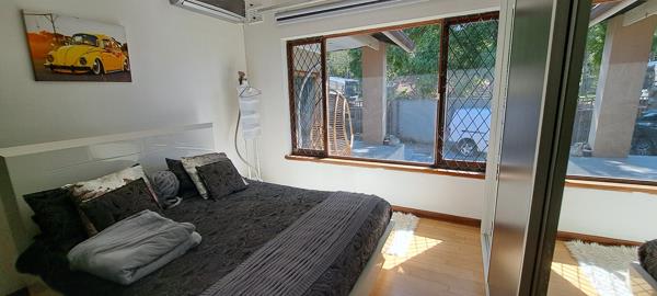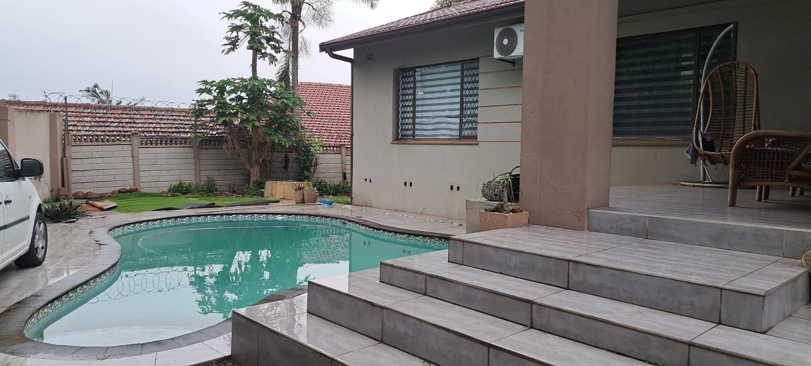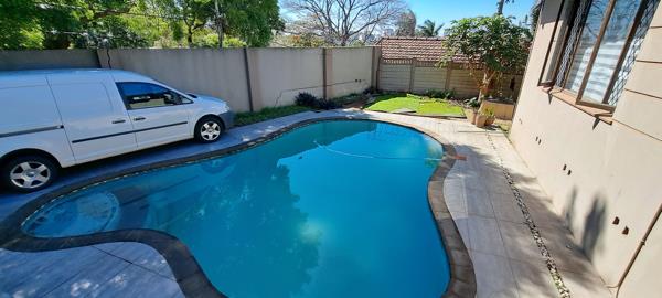 The house offers a solid foundation for conversion subject to municipal approval, with four bedrooms, an office, two full bathrooms, and a large lounge and separate entrance at the rear. The swimming pool, double garage, and parking for four vehicles enhances its value. Practical features like a solar geyser, gas installation, and four air conditioning units are already in place, making it ready for a quick and profitable repurposing into high-value rental units.