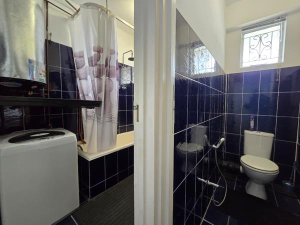 The residence offers 1.5 well-appointed bedrooms and 1.5 bathrooms. Bedrooms benefit from ample natural light and practical features like ceiling fans and built-in storage, ensuring comfort and organisation. The bathroom includes a washing machine for added convenience, alongside a bathtub with an overhead shower, all set within fully tiled walls and floor.