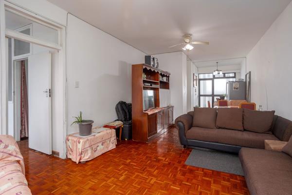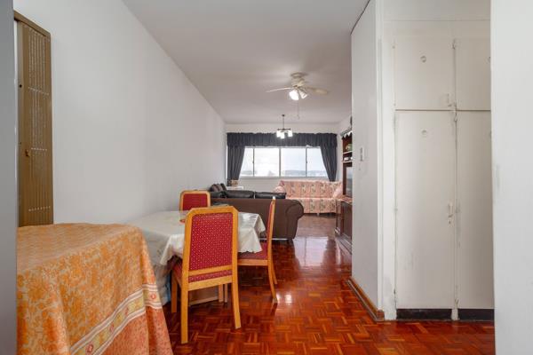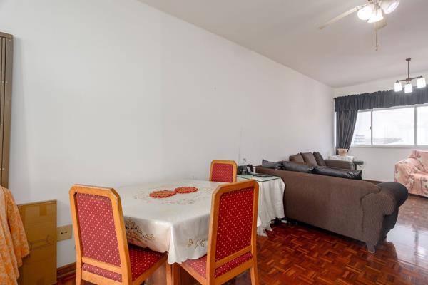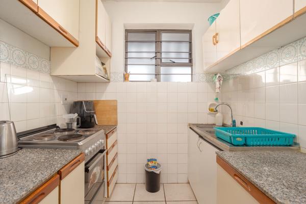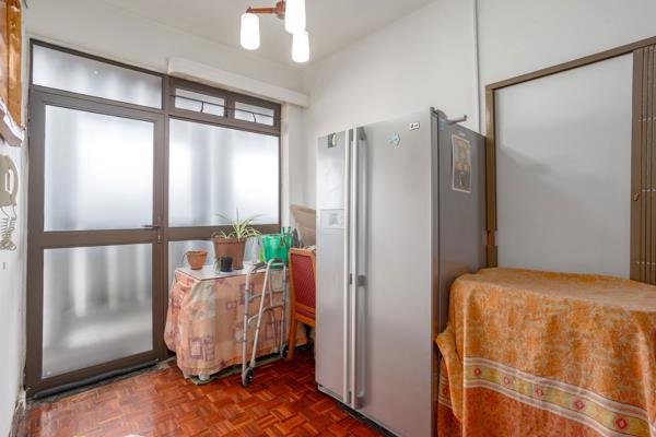 Parquet flooring runs throughout this apartment except for the kitchen and bathrooms.