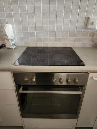 Open plan fully fitted kitchen with stove. Newly carpeted inside. Neat bathroom with bath and hand shower.