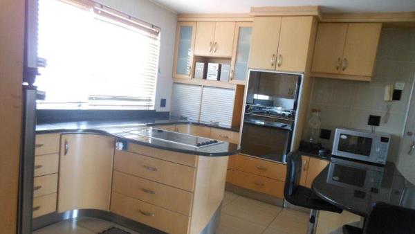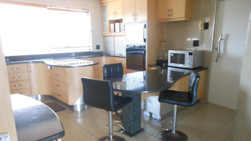 The generous open plan lounge, Dining room and kitchen area has floor to ceiling sliding doors that open the balcony. It is light and airy and offers a wonderful ambiance.The kitchen is fully fitted with plenty of cupboard space and has granite work -top and breakfast counter. it includes Hob and glass -Fronted oven and also has space for dishwasher , microwave and fridge . Over the breakfast counter spotlights and Scullery. This Prime Position provides Spectacular Ocean /Sea Views and walking distance to every thing with 24/7 Manned Security.