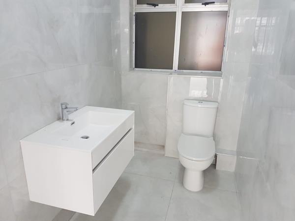 One communal bathroom with shower. Second bedroom is fairly large, fully tiled, porcelain tiles throughout the apartment. Downlighters in lounge and dining area.
