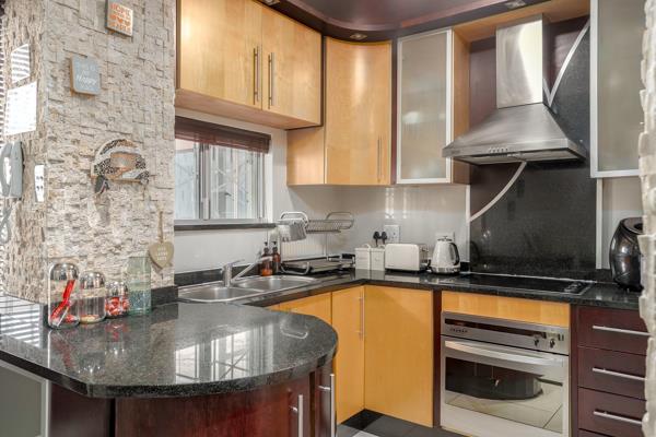 There are 2 bedrooms in this apartment. Both bedrooms are carpeted and have a warm ambiance. Both rooms are big enough to have a single or double bed in them. Storage space is not a problem as both rooms have fitted cupboards, 1 with a dark wool finish and 1 with a light wood finish.