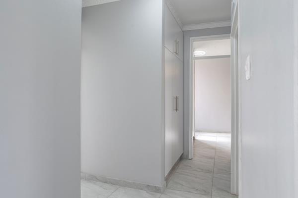 Both bedrooms are thoughtfully designed with ample built-in cupboards, ensuring your storage needs are met effortlessly. The entire apartment is adorned with beautiful porcelain tiles, providing a seamless and easy-to-maintain aesthetic.