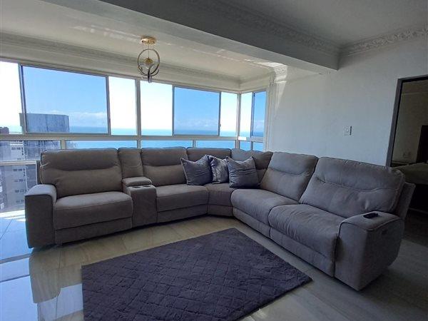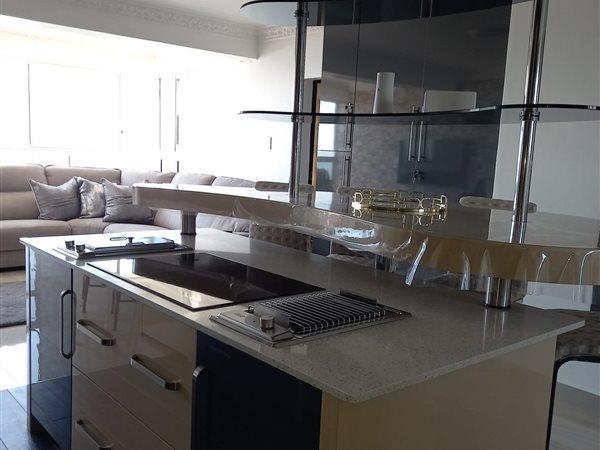 Step into this modern 1-bed haven where panoramic seaviews greet you at every turn. The open-plan lounge and kitchen boast a fully fitted space adorned with sleek Smeg appliances. Revel in the unique breakfast nook with glass display shelves, set against the backdrop of porcelain tiles that span the entire apartment. The lounge''''''''s double sliding windows invite the breathtaking views to become a part of your everyday. The bedroom, equipped with built-in cupboards and an ensuite, ensures a seamless blend of comfort and style. Luxuriate in the fact that the views extend even into your shower. With top-notch lighting, plug points, and switches, this apartment is tailored for contemporary living. And as a cherry on top, secure your sanctuary with the only remote lockup garage in the building. Your perfect escape or everyday dream abode awaits.