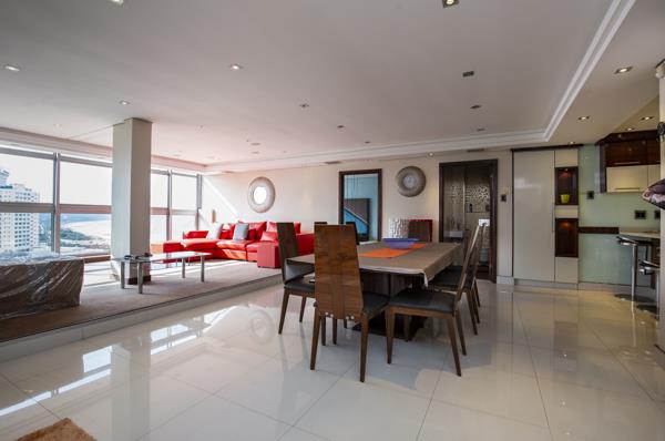This apartment is an epitome of luxury sought after block of flats. This apartment offers stunning sea views and ambience gloss flooring. The kitchen has stunning, modern and granite BICs. Open plan lounge and dining area. There is a large, modern bedroom with en-suite shower and toilet in the downstairs area. There are 3 additional bedrooms upstairs with a walk in closet and balcony with magnificent views. The second bedroom is well sized and all en-suite. Upstairs has a family shower and toilet.