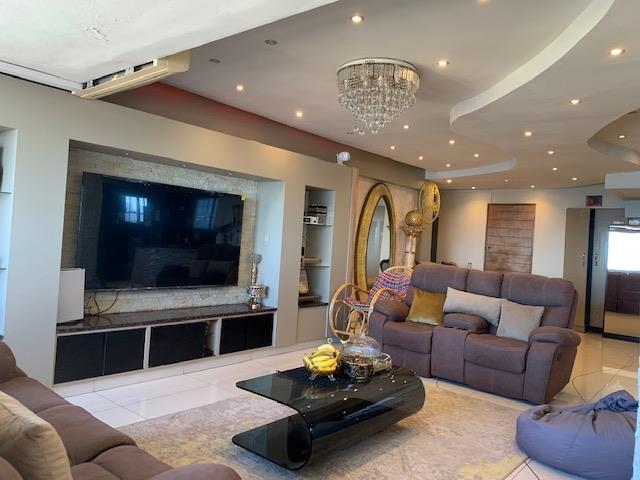 Gorgeous family apartment in sought after building in prime North Beach . This stunning 6 bedroom, 6 bathroom apartment with 2 parkings boasts unobstructed 180 degree seaviews. This executive unit has a beautiful, bright and spacious fully tiled open plan lounge and dining area with lovely chandeliers and interior designed which open into an exquisite, ultra modern gourmet kitchen with granite tops, built in stove, eye level oven and hob with beautiful built in cupboards. This 5 bedroom apartment is fully interior decorated to perfection and is fully air-conditioned with suspended designed ceiling with down - lighters, has 3 master en-suites and 2 separate bathrooms ( shower +1 bath tub) ,a steam room, 1 guest loo with 2 parking bays on roster. Secure building with 24 hr manned security and CCTV Cameras. A must see to experience the magnificence of this fabulous apartment