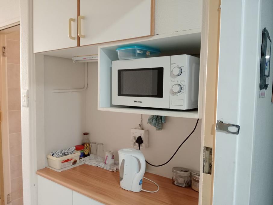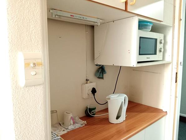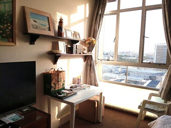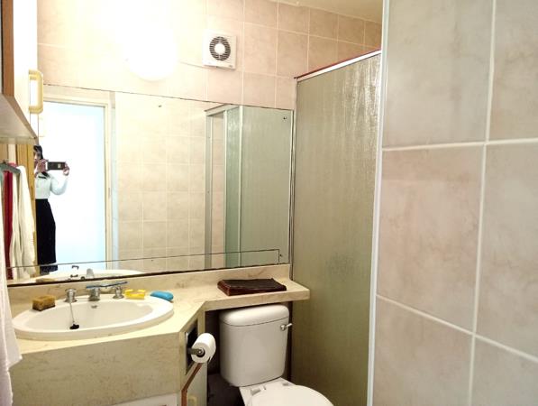 This studio/bachelor apartment with a little kitchenette and a spacious bathroom is on the 9th floor and has the most amazing views of Greyville and Essenwood, especially at night.