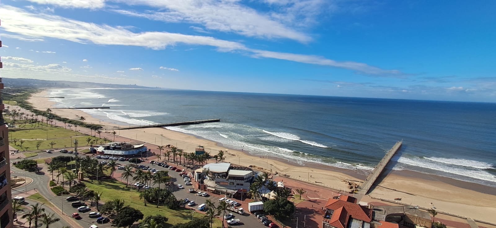 Panoramic sea views from this modern and opulent styled Sectional Title Penthouse on Durbans magnificent golden mile opposite its main beaches , restaurants and beachront promenade.