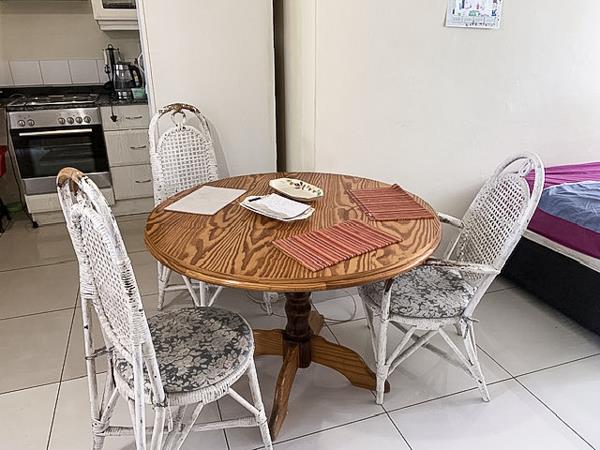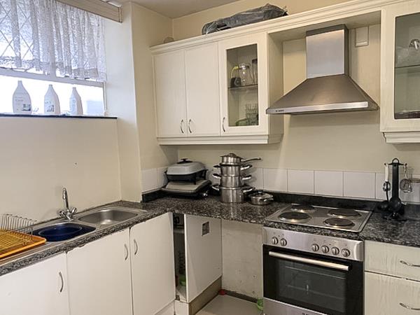 This clean and sleek unit offers 2 bedrooms with cupboards, the kitchen is fitted cupboards, fitted hob, oven and extractor, granite tops, separate toilet and shower.