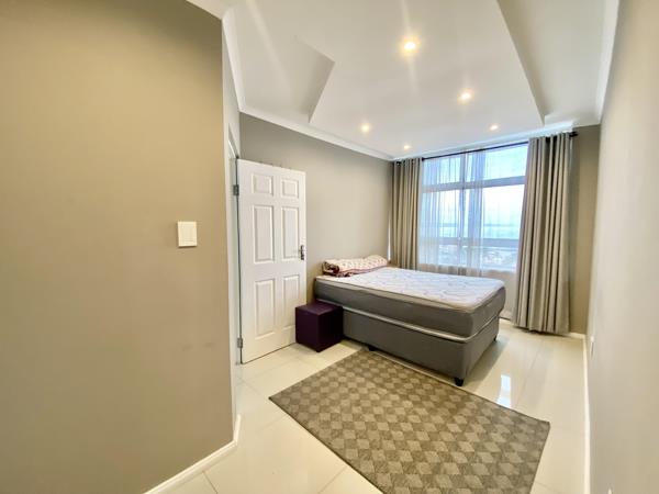 Built in cupboards & Units in the bedroom with Curtains and Beds. Burglar bars.