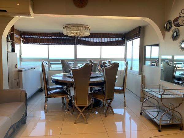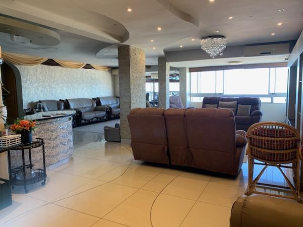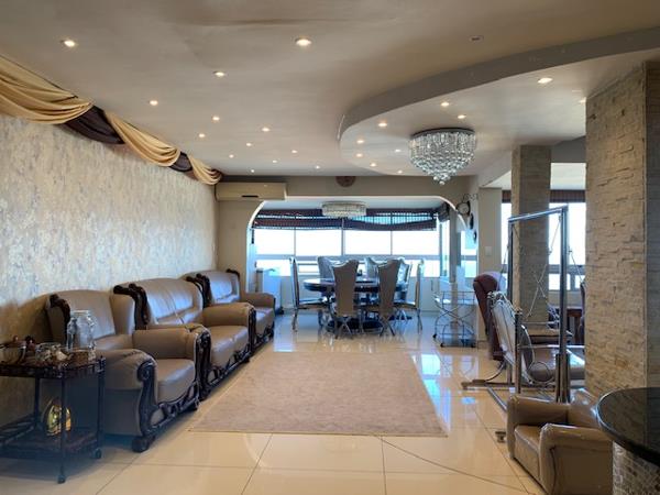 Gorgeous family apartment in sought after building in prime North Beach . This stunning 6 bedroom, 6 bathroom apartment with 2 parkings boasts unobstructed 180 degree seaviews. This executive unit has a beautiful, bright and spacious fully tiled open plan lounge and dining area with lovely chandeliers and interior designed which open into an exquisite, ultra modern gourmet kitchen with granite tops, built in stove, eye level oven and hob with beautiful built in cupboards. This 5 bedroom apartment is fully interior decorated to perfection and is fully air-conditioned with suspended designed ceiling with down - lighters, has 3 master en-suites and 2 separate bathrooms shower 1 bath tub ,a steam room, 1 guest loo with 2 parking bays on roster. Secure building with 24 hr manned security and CCTV Cameras. A must see to experience the magnificence of this fabulous apartment