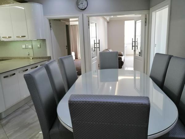 Very upmarket high apartment with ultra high end fittings and finishes. sectional title very sought after and niche building. this immaculate showroom apartment features lovely seaviews under cover parking 3 bedrooms , 3 bathrooms , gourmet open plan kitchen leads into the diningroom with seperate lounge and wrap around enclosed balcony sunroom and excel security. also has porclein tiles , granite tops, built in cupboards, aluminium windows and air conditioner