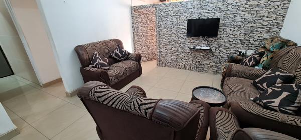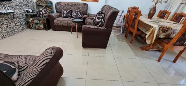 The kitchen is fully fitted with granite tops. The dining room and lounge is an open plan and fully tiled.
