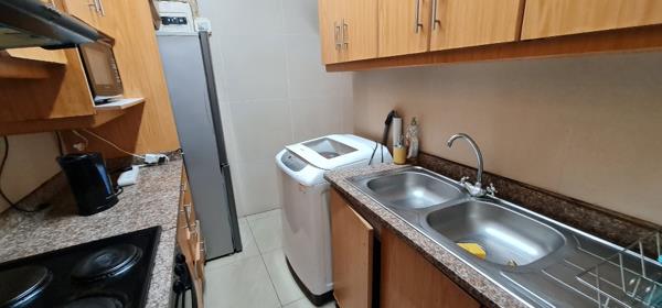 This is a neat flat that has space, ideally located near the bus route, shopping centres, library, hotels, restaurants and a few metres to the beach. The building has 247 manned security