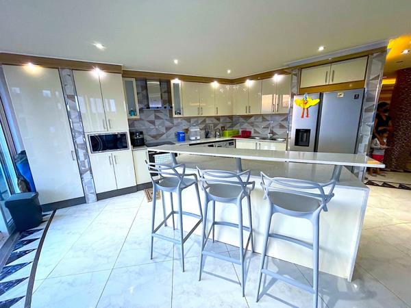 - Brilliant White High Gloss Lacquer finishes on all cupboards and the island counter