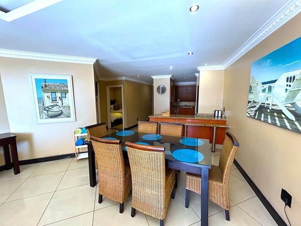This stylish and spacious apartment, is currently being used as a corporate & holiday letting apartment. It comprises a practical, open-plan kitchen, dining and lounge area, which offers sliding patio doors that open out onto the spacious viewing balcony and the superb views to the canals, the palm trees and Timeball Square. For convenience, there are also cupboards installed on the veranda, to house tumble dryer and the house linen for rentals.