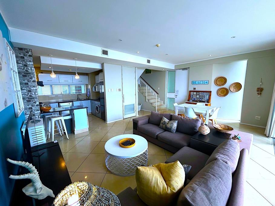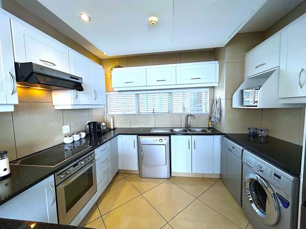 The open plan, kitchen, lounge and dining room areas, boast tall concertina glass doors that open out onto a large balcony. This allows one to open the internal concertina doors and benefit from the spaciousness that the internal areas and the patio affords one. The balcony area, offers spectacular beach, canal and ocean views, from the beachfront Water sports clubs, all the way up the coats to past Umhlanga.