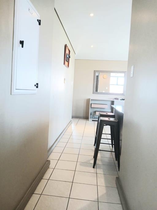 The kitchen flows out into the spacious living area, which includes a dining area, the lounge. This wonderful and bright living area, has full length windows all around, which allows plenty of light to filter into the spacious lounge and dining areas.