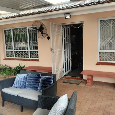 Fully enclosed backyard with a built-in braai, gas oven (with bottle), washbasin, laundry/wash-up area, and storage cupboards perfect for all-weather entertaining.