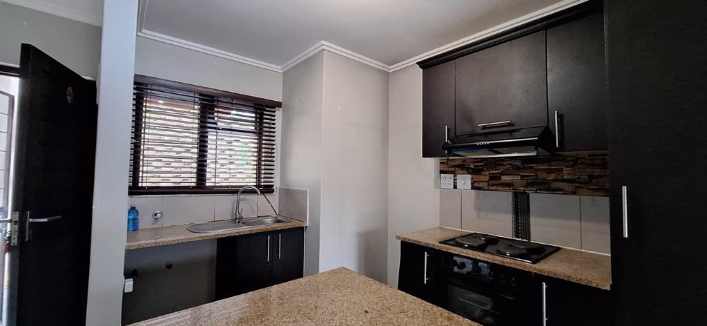 MODERN, IMMACULATE 2 BEDROOM CORNER GARDEN UNIT WITH LAMINATE FLOORS AND TILED THROUGHOUT. AIR CONDITIONER IN MAIN BEDROOM. FITTED KITCHEN WITH BUILT IN CUPBOARDS, GRANITE TOPS AND UNDER COUNTER OVEN, EXTRACTOR FAN AND FITTED HOB. OPEN PLAN LIVING AREA, LEADING ONTO A COVERED PATIO. FITTED BATHROOM WITH A VANITY AREA AND TOILET AND BATHTUB WITH A SHOWER. BLINDS .