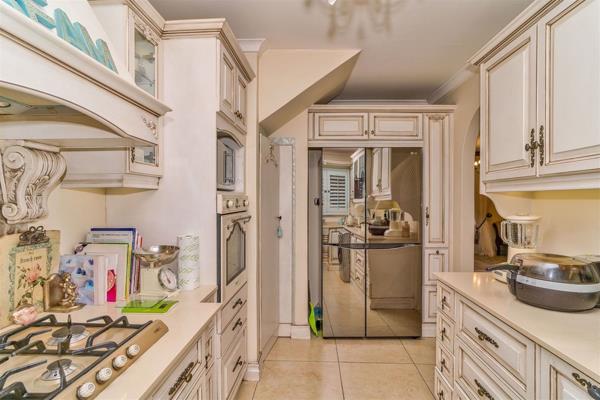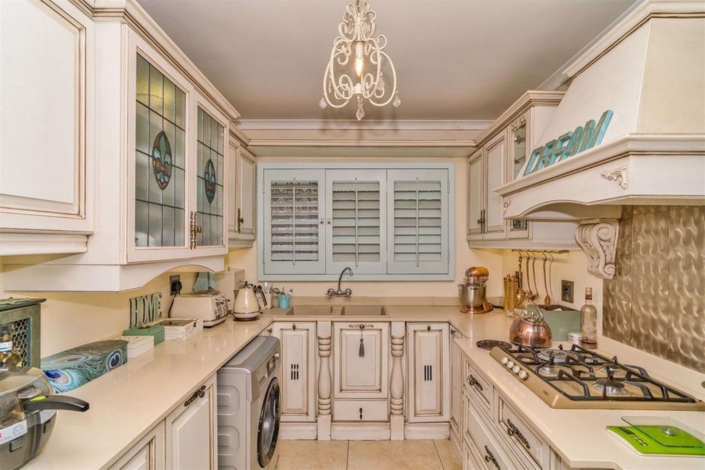 The fitted, uniquely styled kitchen adds personality and practicality, flowing seamlessly to the living and dining areas.