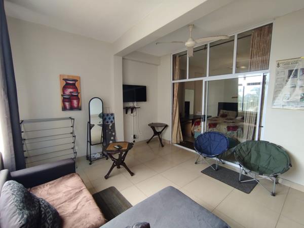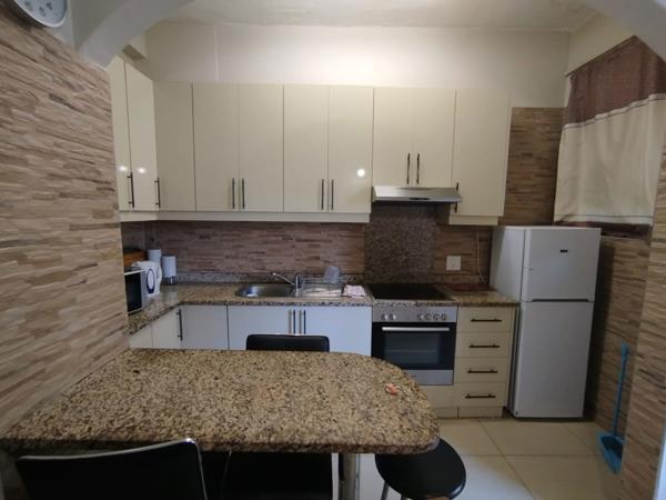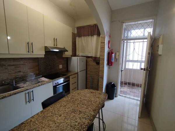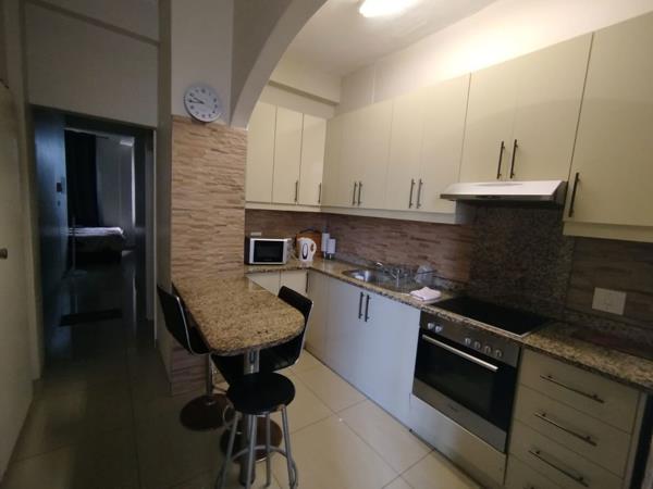 The apartment offers one bedroom with built-in cupboards and ceiling fan. The lounge and dining area is very spacious and has a side sea view. The kitchen is fitted with granite counter tops, under the counter stove/hob with extractor fan. The bathroom is fitted with a large shower, basin and toilet.
