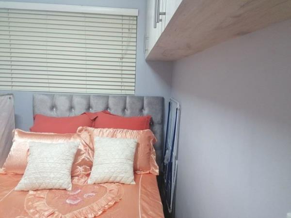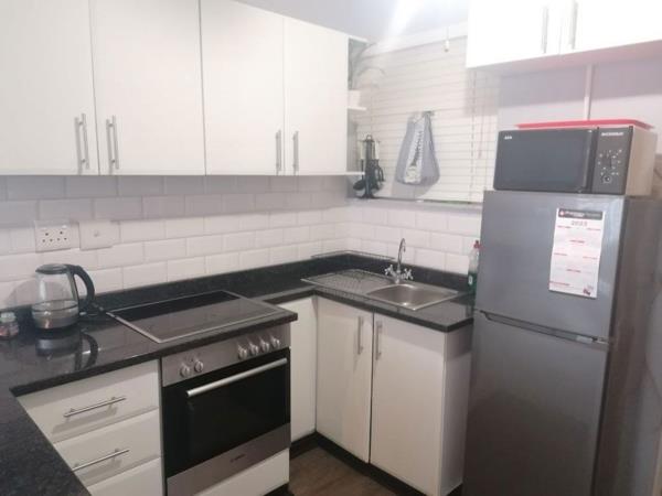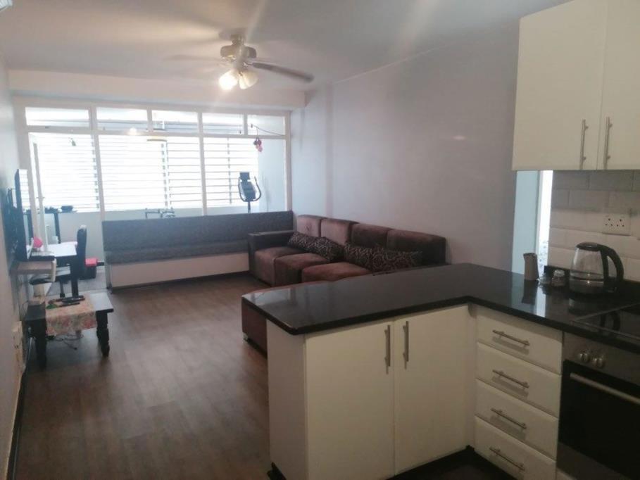 The large bedroom is fitted with a built-in cupboard. The bathroom is separate from the bedroom and offers shower, basin and toilet. The kitchen at the end of the passage is fitted with an oven and hop. The apartment is plumbed for a washing machine.