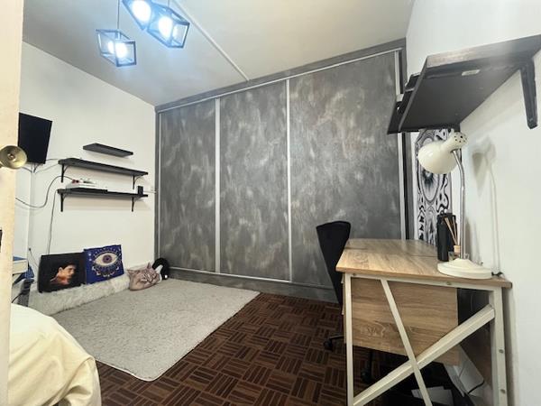 The main bedroom has ample storage with built-in cupboards, ensuring a clutter-free space.