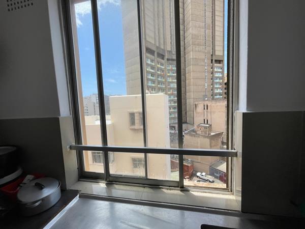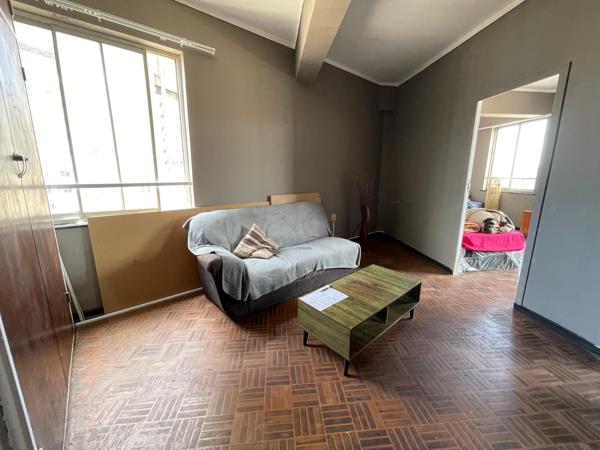 Rawson Berea offers this 1 bedroom apartment has a fitted bedroom with BICs, a huge lounge that has been subdivided into a second bedroom with a drywall. A lounge area, bathroom with a bath-tub, toilet and a hand basin. The kitchen has BICs.