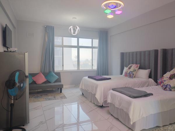 This stunning Brand New Renovated studio apartment in Marlborough Court, South Beach, Durban, is the ultimate investment opportunity or retirement haven! Located Directly Across from the Beach, this spacious 4-sleeper self-catering studio is perfect for holiday letting, making it an ideal Airbnb Investment.