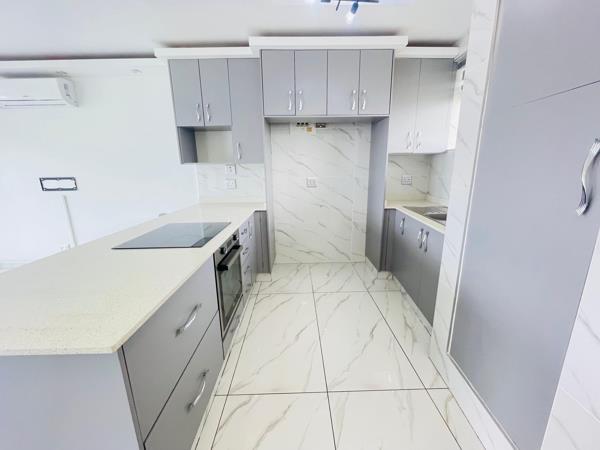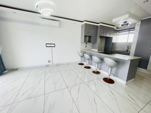 This beautifully finished 1-bedroom, 1-bathroom apartment offers a blend of elegance, practicality, and ocean views. Step into the open-plan kitchen, lounge, and dining area featuring modern stone coat countertops, sleek glass stove with touch screen controls, pull-down sink tap, and marble-patterned tiled walls. Theres ample space for a double-door fridge and microwave, with built-in cupboards providing smart storage.